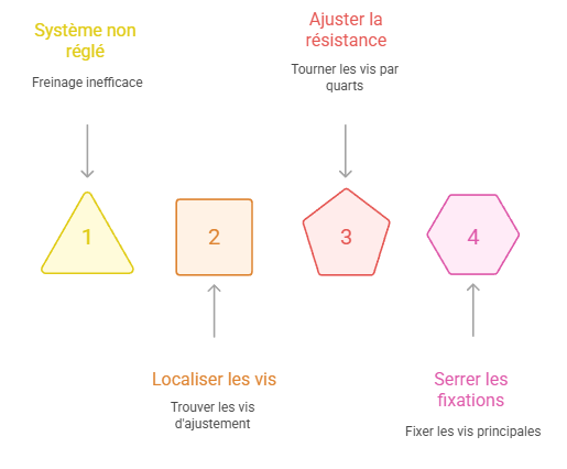 Le réglage proprement dit commence par la localisation des vis d’ajustement situées sur les charnières. Ces éléments, souvent cachés sous des capots plastiques, contrôlent directement la résistance du mécanisme de freinage. Nous utilisons généralement un tournevis cruciforme de taille moyenne pour effectuer ces ajustements.