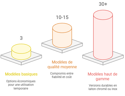 L’analyse des prix révèle une fourchette étendue allant de 3 euros pour les modèles basiques jusqu’à plus de 30 euros pour les versions haut de gamme en laiton chromé ou inox. Cette variation tarifaire reflète les différences de qualité des matériaux, de finition et de durabilité des équipements proposés.